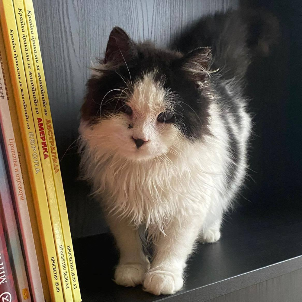 Despite his calm nature, Oracle is still a young cat and does engage in playful behavior. He can run, climb, and interact with toys just like any other cat, showing adaptability and confidence in his environment. His blindness does not prevent him from exploring or enjoying life, it simply shapes the way he experiences it.